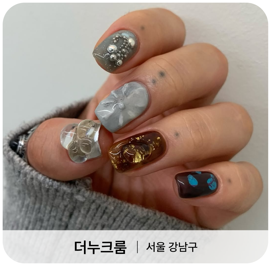 요즘 네일 중에서도 가장 입체적인 무드예요.